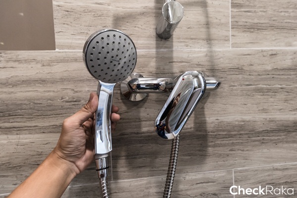 เจาะผนังบางส่วนสำหรับวางอุปกรณ์อาบน้ำมาให้ 2 จุด