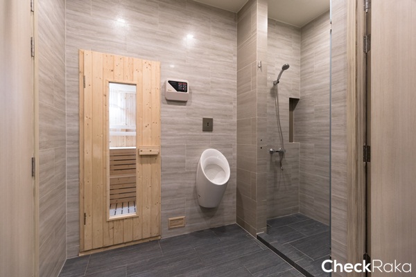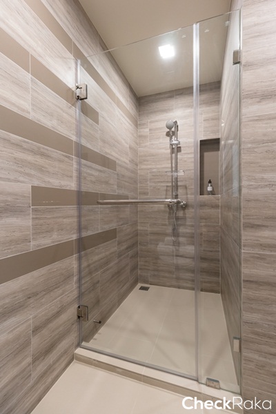 ได้สุขภัณฑ์ในห้องน้ำ และฉากกั้นอาบน้ำเหมือนห้องที่แล้ว ต่างกันแค่ตำแหน่งการจัดวาง