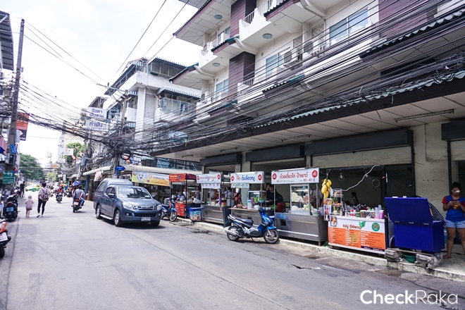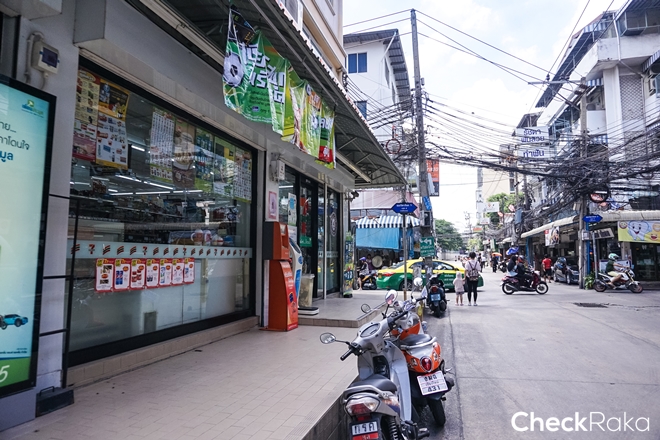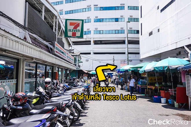 เข้ามาแยกนี้ก็มีร้านอาหาร ผลไม้ ร้านสะดวกซื้ออีกเพียบ มุ่งหน้าต่อแล้วเลี้ยวขวาเข้าด้านหลังโลตัสได้เลย
