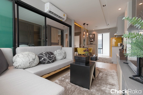 ห้องของโครงการนี้ขายแบบ Fully Furnished ให้เฟอร์นิเจอร์มาครบแบบมัลติฟังก์ชัน ทั้งเฟอร์นิเจอร์ Built-in และเฟอร์นิเจอร์ลอยตัวพร้อมแอร์ยี่ห้อเทรน (TRANE) ทางโครงการมีห้องตัวอย่างให้ดูทั้งหมด 2 ห้อง เป็นห้องแบบ 1 Bedroom ขนาด 28 ตร.ม. และ 1 Bedroom ขนาด 34.5 ตร.ม.