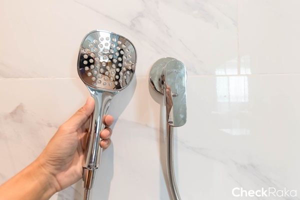 ได้ชุดฝักบัวทรงสี่เหลี่ยมและก๊อกน้ำของ Grohe เช่นกัน