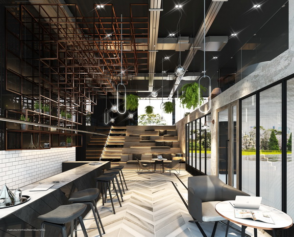 ภาพจำลองบรรยากาศภายใน Co-Working Space สไตล์โมเดิร์น ตั้งอยู่ที่อาคาร A