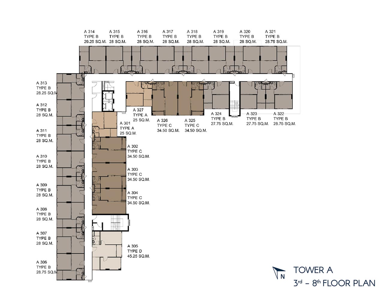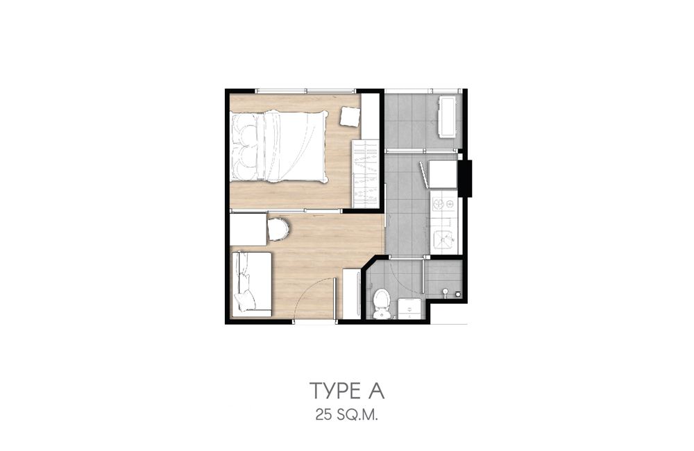 - แบบ 1 Bedroom (Type A) : พื้นที่ใช้สอยขนาด 25 ตร.ม. (คลิกชมแปลนห้อง)