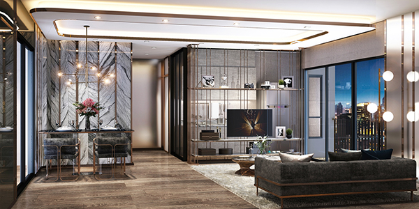 ห้องแบบใหม่ใหม่ขนาด 66.50 ตร.ม. เน้นให้พื้นที่นั่งเล่นกว้างขวางเหมาะกับครอบครัวที่ต้องการพื้นที่มากขึ้น พร้อมห้องนอนขนาดใหญ่อีก 2 ห้องนอน Master Bedroom ชมวิวแบบเต็มๆ ด้วยกระจกเข้ามุมแบบตัว C ในส่วนของห้องครัวก็นำมาไว้ตรงกลางห้องพร้อมกระจกกั้นเพื่อโชว์ความสวยงามของครัว เครื่องครัวต่างๆ ให้อารมณ์ครัวในร้านอาหารหรูๆ และยังให้เห็นคนในครอบครัวทำอาหาร ดูไปแบบเพลินๆ เชื่อมความสัมพันธ์กันในครอบครัวได้ด้วย