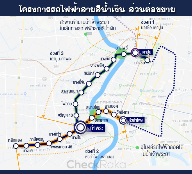 คือถ้าไม่นับสถานีหลักสองถึงสถานีบางไผ่ รถไฟฟ้าสายสีน้ำเงินที่จะวิ่งจาก "สถานีท่าพระ" เป็นวงกลมมาบรรจบที่สถานีท่าพระอีกครั้ง เรียกว่าเป็น Bangkok loop line ที่เก๋ไก๋และสะดวกมากๆ นอกจากความสะดวกแล้ว เรายังได้อารมณ์แอดเวนเจอร์สะเทินน้ำสะเทินบกไปอีก เพราะมีทั้งลอดใต้แม่น้ำเจ้าพระยา ส่วนที่สถานีสนามไชยก็เป็นสถานีที่สวยมากๆ แถมยังโผล่ขึ้นไปข้ามสะพานชมวิวแม่น้ำเจ้าพระยาที่สถานีบางโพธิ์ได้อีก บอกได้เลยว่าไม่ธรรมดาแน่นอน