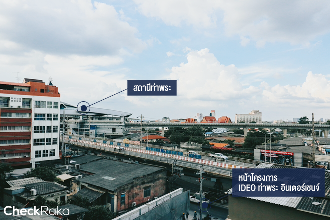 จากหน้าโครงการ มองไปยังสถานีท่าพระ ถือว่าใกล้มากๆ เลยนะคะ ระยะไม่เกิน 100 เมตร