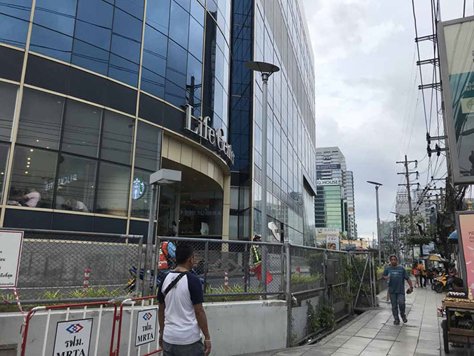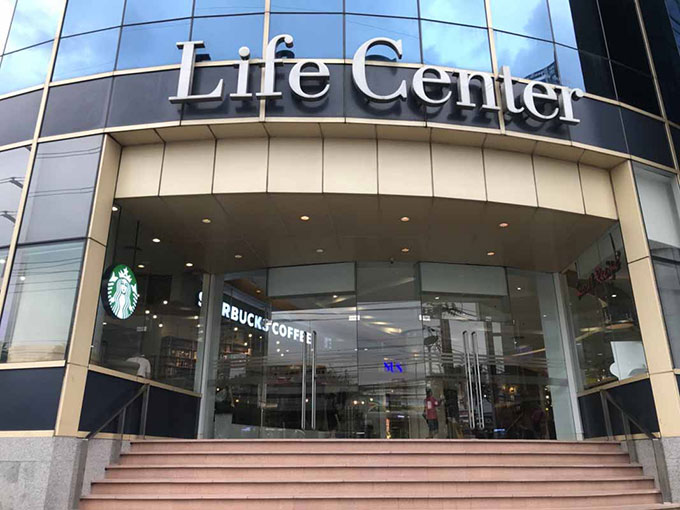 เดินขึ้นมาจากสถานีรถไฟฟ้าใต้ดินก็เจออาคาร Life Center ที่เป็นอาคารสำนักงานให้เช่า ชั้นล่างก็จะมีร้านกาแฟ Starbucks ให้นั่ง