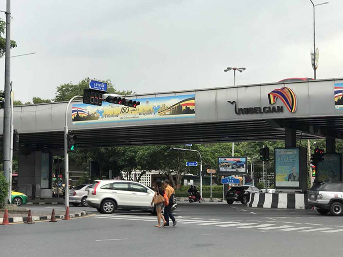 ฝั่งตรงข้ามก็เป็นสะพานไทย-เบลเยี่ยม ที่อยู่ตรงแยกพระรามสี่-สาทร พอดี