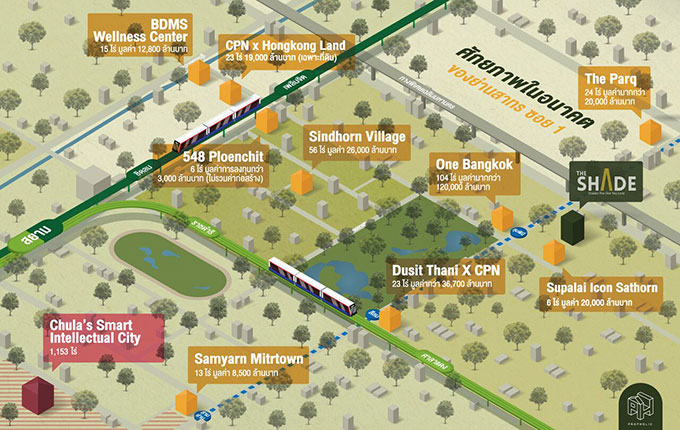 ศักยภาพของทำเลสาทร ซอย 1 ถูกเติมเต็มให้มากขึ้นด้วย พัฒนาการของโครงการอสังหาริมทรัพย์ระดับโลกหลายแห่งบนถนนพระรามสี่ นำโดยกลุ่ม TCC Asset และ Fraser Property อย่างโครงการ One Bangkok บนที่ดินขนาด 104 ไร่ ด้วยงบประมาณ 120,000 ล้านบาทซึ่งถือได้ว่าเป็นโครงการอสังหาริมทรัพย์ที่พัฒนาโดยภาคเอกชนที่ใหญ่ที่สุด พื้นที่อาคารรวมอยู่ที่ประมาณ 1.83 ล้านตารางเมตร, โครงการ The Parq โครงการมิกซ์-ยูสขนาดใหญ่บนที่ดินขนาด 35 ไร่ติดถนนพระรามที่ 4 และรัชดาภิเษก, โครงการสามย่านมิตรทาวน์ ของบริษัท แผ่นดินทอง พร็อพเพอร์ตี้ ดีเวลลอปเม้นท์ จำกัด (มหาชน) ในกลุ่มบริษัท TCC Asset บนที่ดินขนาด 13 ไร่ของจุฬาลงกรณ์มหาวิทยาลัย พื้นที่ใช้สอยรวม 222,000 ตารางเมตร พร้อมอุโมงค์ทางเดินเชื่อมระยะทาง 200 เมตรไปยังรถไฟฟ้าใต้ดิน MRT สถานีสามย่าน และโครงการร่วมทุนกันพัฒนาระหว่าง บริษัท ดุสิตธานี จำกัด (มหาชน) และบริษัท เซ็นทรัล พัฒนา จำกัด (มหาชน) มูลค่าโครงการ 3.67 หมื่นล้านบาท พื้นที่รวม 23 ไร่กว่า