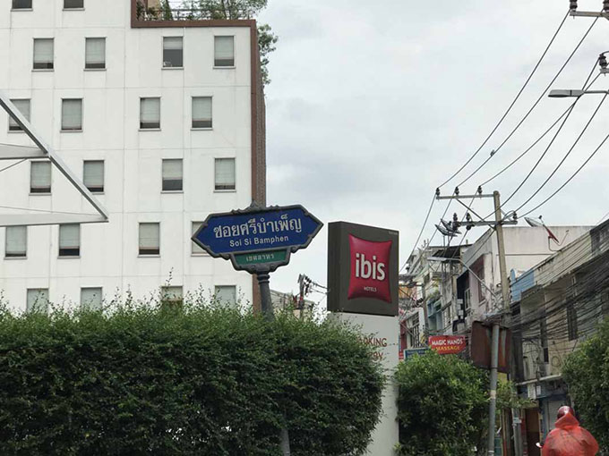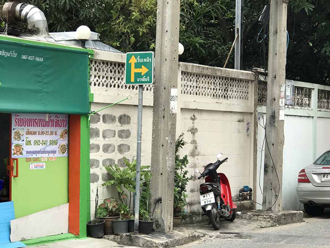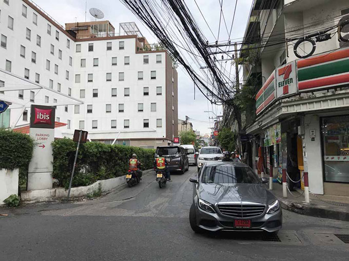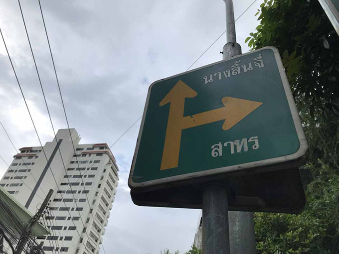สามแยกที่สามารถเลี้ยวขวาออกไปทางถนนนางลิ้นจี่ พระราม 3 ได้ แต่ทางทีมงานเลี้ยวซ้ายเพื่อไปยังพื้นที่ของโครงการ The Shade Sathon 1