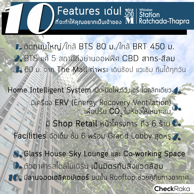 มาดูกัน! 10 Features เด่น ที่จะทำให้คุณอยากเป็นเจ้าของ "Whizdom Station Ratchada-Thapra"