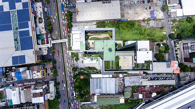 Bird Eye View ของโครงการ บนชั้น Rooftop เห็นจุดจอด ฮ. ชัดเจนค่ะ ทั้งนี้ก็เพื่อสนับสนุนการกู้ภัยทางอากาศ