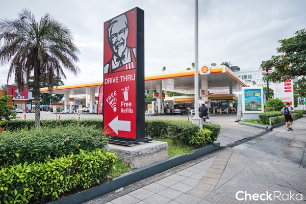 และปั๊มน้ำมัน Shell ภายในปั๊มมีร้าน KFC ที่เปิดให้บริการตลอด 24 ชม.