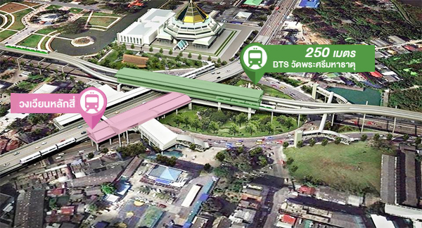 ความสะดวกสบายอย่างหนึ่งของโครงการเลยก็คือ ตั้งอยู่ใกล้จุดตัดของรถไฟฟ้า 2 สาย ทั้งรถไฟฟ้า BTS สายสีเขียว (ช่วงหมอชิต-สะพานใหม่-คูคต) สถานีวัดพระศรีมหาธาตุ ใกล้กับโครงการประมาณ 250 เมตร (คาดว่าจะสร้างเสร็จปี 2563) และรถไฟฟ้ามสายสีชมพู สถานีหลักสี่ ซึ่งตรงจุดนี้เป็นสถานีอินเตอร์เชนจ์ของรถไฟฟ้าทั้ง 2 สาย ในอนาคตหากสร้างเสร็จจะช่วยเชื่อมการเดินทางให้เข้าสู่ใจกลางเมืองได้อย่างสะดวกและใช้เวลาไม่นาน ทำให้การเดินทางเป็นเรื่องง่ายยิ่งขึ้น
