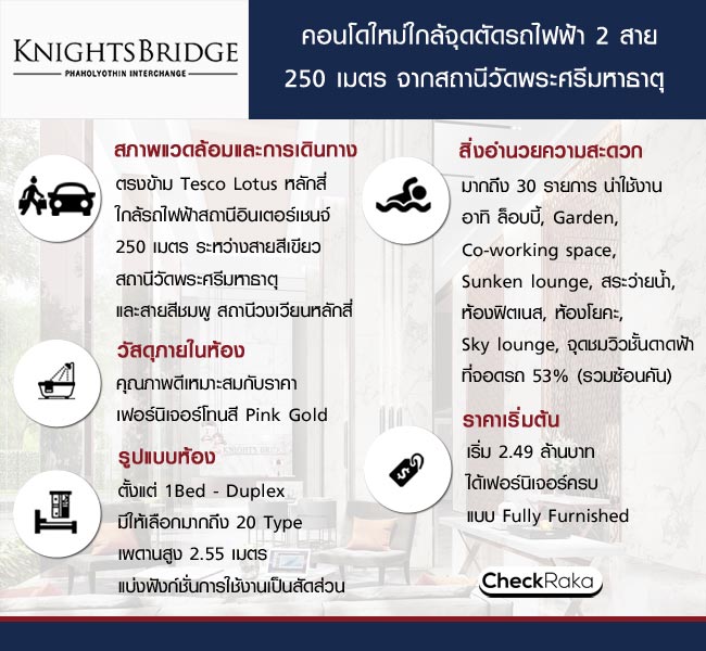 รอบนี้เราจะพาทุกคนไปรีวิวเยี่ยมชมคอนโดใหม่ใกล้จุดตัดรถไฟฟ้า 2 สาย ไนท์บริดจ์ พหลโยธิน อินเตอร์เชนจ์ (Knightsbridge Phaholyothin Interchange) เดินทางสะดวกใกล้รถไฟฟ้าสายสีเขียว สถานีวัดพระศรีมหาธาตุ ประมาณ 250 เมตร และรถไฟฟ้าสายสีชมพู สถานีวงเวียนหลักสี่ ติดถนนพหลโยธิน ตรงข้าม Tesco Lotus หลักสี่ พร้อมสิ่งอำนวยความสะดวกแบบจัดเต็มรวม 30 อย่าง บนพื้นที่กว่า 3700 ตร.ม. และรูปแบบห้องดีไซน์ใหม่ที่มีให้เลือกถึง 20 แบบด้วยกัน คอนโดนี้จะมีความน่าสนใจแค่ไหนตามไปชมกันเลยค่ะ