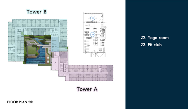 Floor Plan ชั้น 5 : เป็นชั้นที่มีทั้งสิ่งอำนวยความสะดวกบางส่วนและห้องพักอาศัย