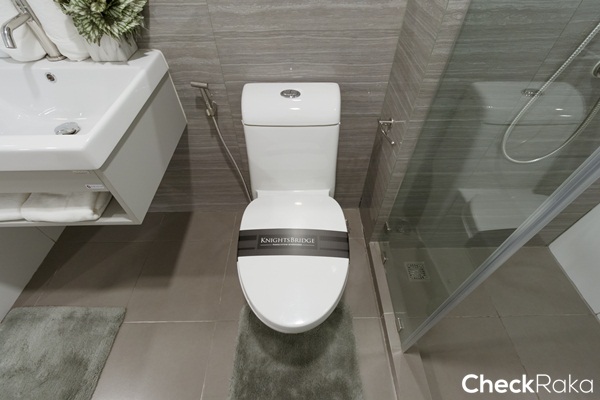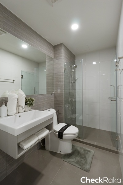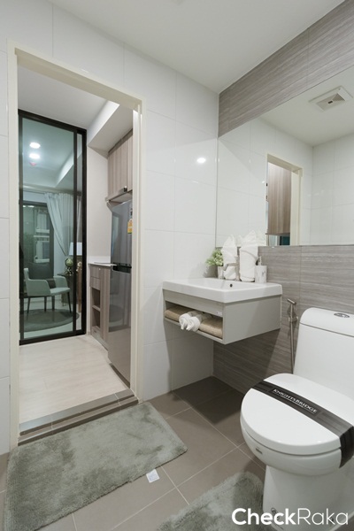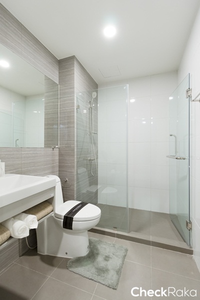 ภายในห้องน้ำแบ่งพื้นที่ใช้งานส่วนเปียกและส่วนแห้งแยกออกจากกันชัดเจน