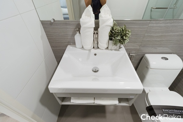 สุขภัณฑ์ในห้องน้ำเป็นของ Mogen เหมือนกัน แต่พื้นที่ใช้สอยจะขนาดใหญ่กว่าห้องที่แล้วเล็กน้อย