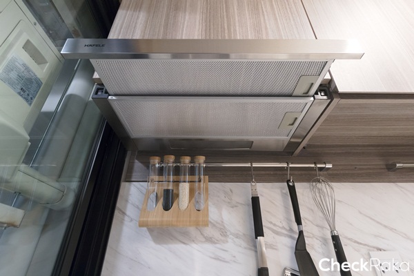 ได้เครื่องดูดควันของ Hafele แบบระบบหมุนเวียน และจะส่งอากาศบริสุทธิ์ออกมาด้านบน สามารถปรับได้ 2 ระดับ