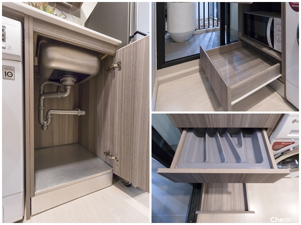 ได้ชุดครัว Built-in พร้อมช่องเก็บของด้านบนและด้านล่าง