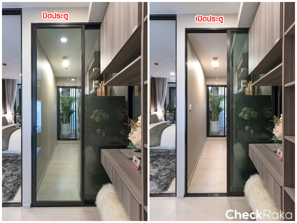 จากห้องนอนมองย้อนกลับไปยังประตูทางเข้าห้อง