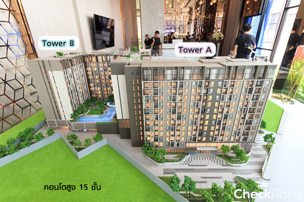 - อาคารชุดพักอาศัย : สูง 15 ชั้น จำนวน 2 อาคาร จำนวนห้องพักอาศัย 726 ยูนิต และร้านค้า 3 ยูนิต