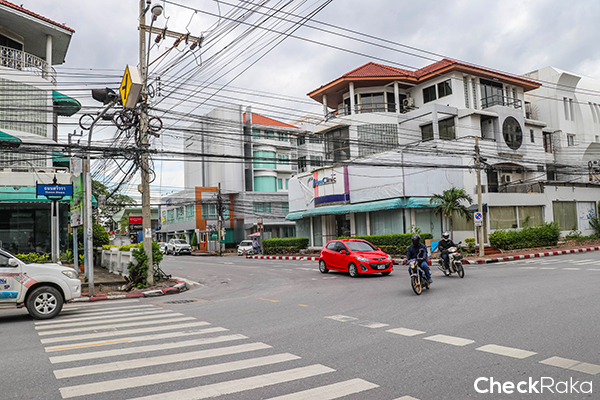 จากถนนประดิษฐ์มนูญธรรมเลี้ยวซ้ายเข้ามาก็จะเจอสี่แยกศรีวรา