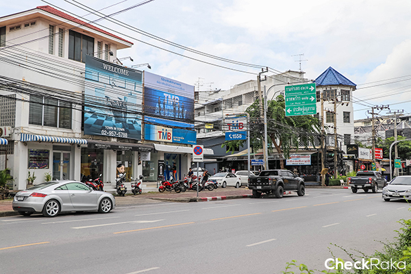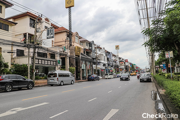 ส่วนใหญ่ริมถนนจะเป็นอาคารพาณิชย์ เปิดเป็นร้านค้า ร้านอาหาร หรือบริษัทต่างๆ