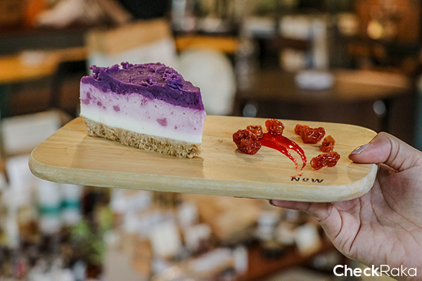 ชีสเค้กมันม่วง ด้านล่างเป็นครัมเบิ้ลหอมเนย ด้านบนเป็นเนื้อมูสเด้งๆ อร่อยมากค่ะ