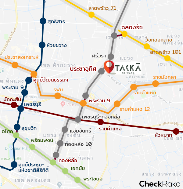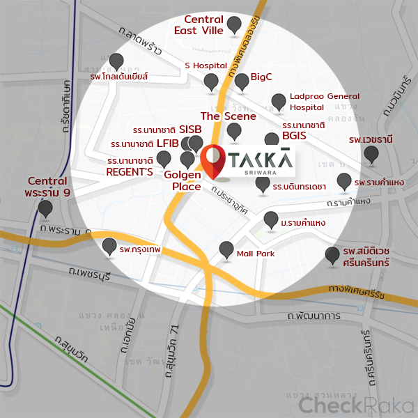 โครงการ Takka Sriwara (ตรรกะ ศรีวรา) ตั้งอยู่ที่ถนนศรีวรา แขวงพลับพลา เขตวังทองหลาง กรุงเทพมหานคร โดยตัวโครงการจะเข้าไปในซอยประมาณ 200 เมตร ไม่ได้อยู่ริมถนนค่ะ โครงการนี้ถือเป็นคอนโดแรกในรอบ 10 ปี ของย่านทาวน์อินทาวน์ ที่จะช่วยให้คนที่ทำงานในย่านนี้สะดวกมากขึ้น เพราะศักยภาพด้านทำเลของที่นี่ก็พร้อมสำหรับการอยู่อาศัย มีครบทั้ง ร้านค้า ร้านอาหาร โรงเรียน และโรงพยาบาล