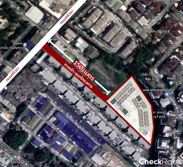 จากแยกศรีวราเดินมาประมาณ 180 เมตร ก็จะเจอทางเข้าโครงการ Takka Sriwara ค่ะ