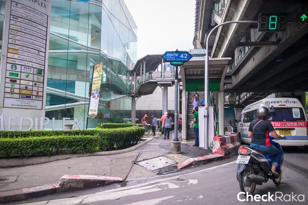 ให้ลงทางออกที่ 2 จะเดินลงมาเจอกับซอยสุขุมวิท 42