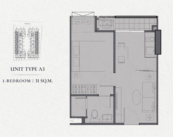 - วิวด้านนอกฝั่งทิศตะวันออก และทิศตะวันตก ก็จะเป็นแบบ 1 bedroom ขนาด 31 ตร.ม. ทั้งหมด