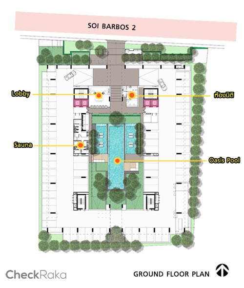 Floor Plan ชั้น Ground : ประกอบด้วย ล็อบบี้, ซาวน่า, ห้องนิติบุคคล, Smart Locker,