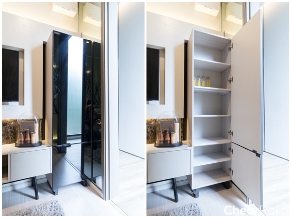 อีกฝั่งของห้องเป็นที่ตั้งของตู้เสื้อผ้า และห้องน้ำ