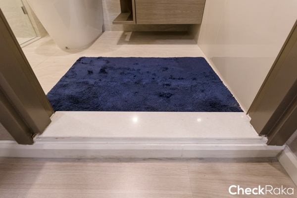 ธรณีประตูห้องน้ำเป็นหินเทียมโทนสีขาว ยกสูง 8 ซม.