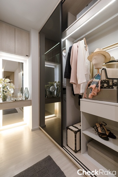 ได้ตู้เสื้อผ้าบานเลื่อนขนาดใหญ่ 2 ตอน และโต๊ะเครื่องแป้ง สาวๆ ที่รักการแต่งตัว น่าจะชื่นชอบมุมนี้