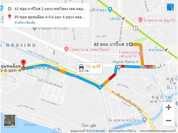 แผนที่แสดงเส้นทางการเดินจาก BTS เอกมัย ไปยังที่ตั้งโครงการ