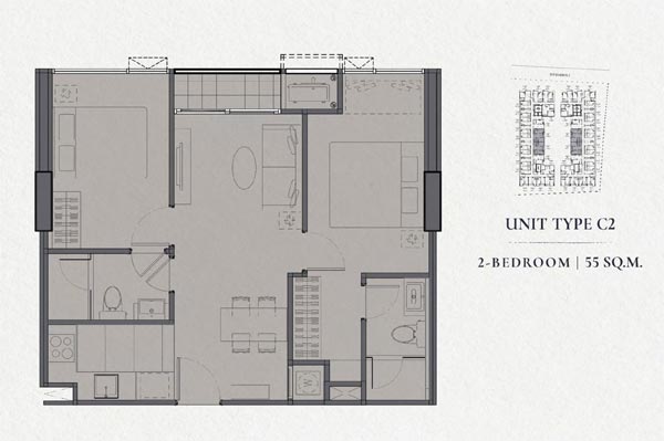 2) ห้องแบบ 2 Bedrooms พื้นที่ใช้สอยขนาด 55 ตร.ม.