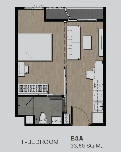ห้องตัวอย่าง 1 Bedroom ขนาด 34 ตร.ม.