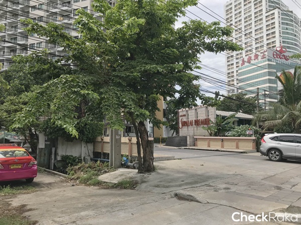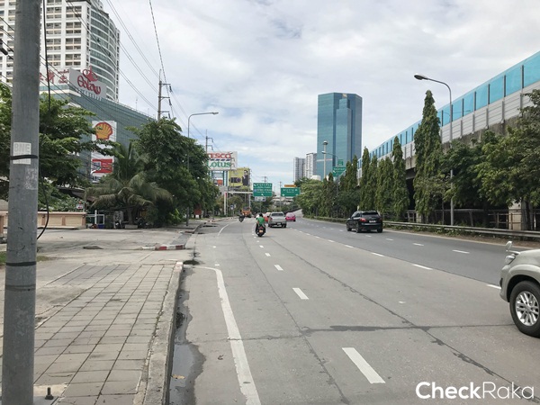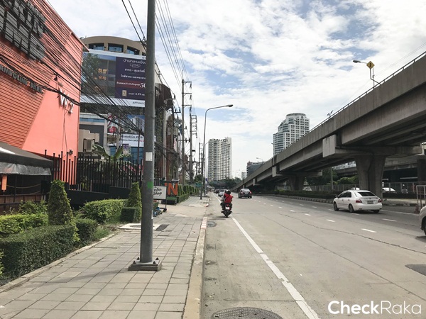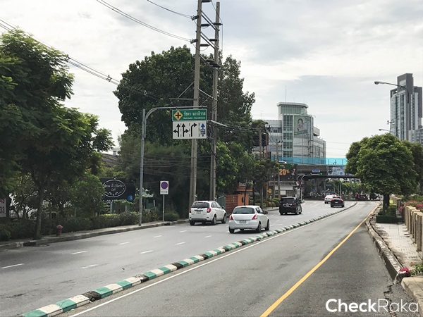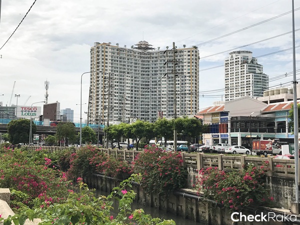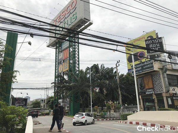 ตรงสี่แยกนี้ถ้ามองไปทางขวาจะเจอ Tesco Lotus และคอนโดตึกสูงๆ ใหญ่ๆ ที่เห็นในรูปคือ