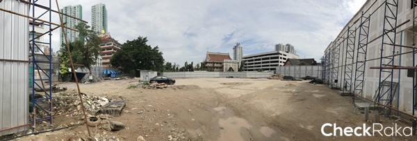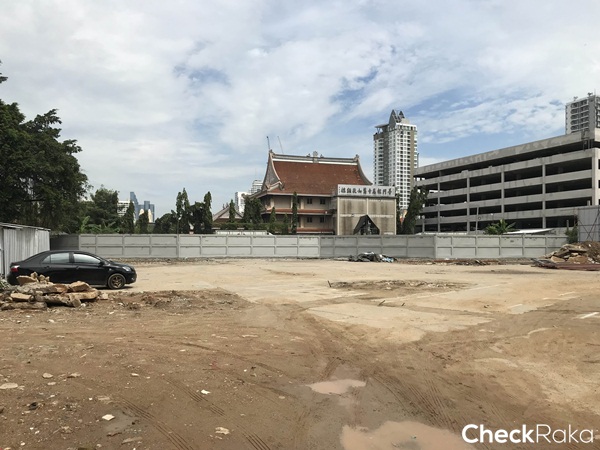 พื้นที่ภายในโครงการติดกับหลังวัดโพธิ์แมน และที่จอดรถของ The Up Rama 3 พอดี