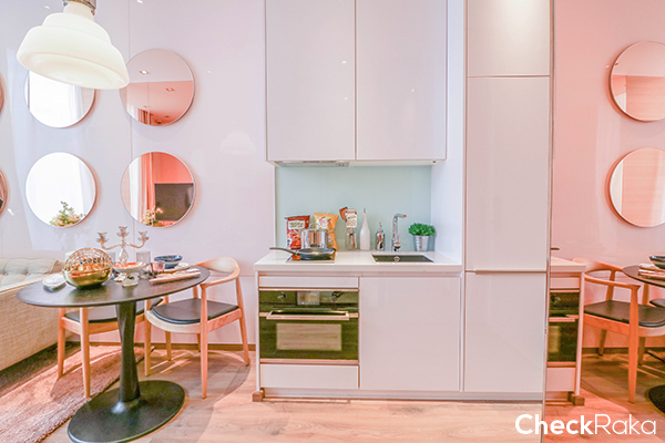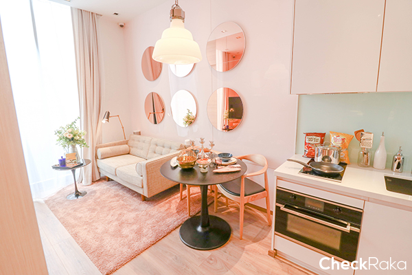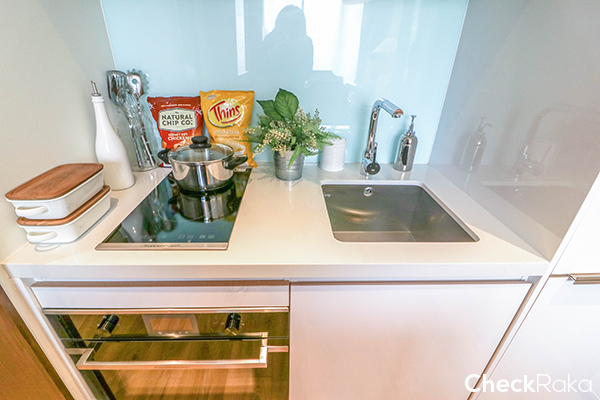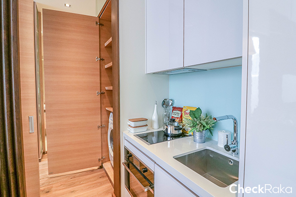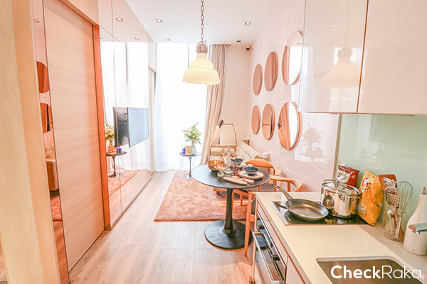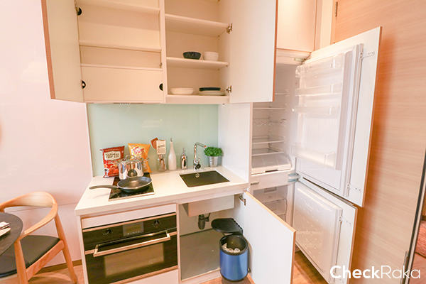 ห้องพักอาศัยของโครงการนี้จะเน้นไปที่ 1 ห้องนอน ให้พร้อมเฟอร์นิเจอร์แบบ Fully Fitted ให้ชุดครัวแบบพรีเมี่ยม เตาไฟฟ้า และไมโครเวฟ ยี่ห้อ Kuppersbusch พร้อมครื่องดูดควัน ก๊อกน้ำ อ่างล้างจาน และตู้เย็นแบบบิวท์อินยี่ห้อ Teka นอกจากนั้นยังมีตู้เสื้อผ้าและโถสุขภัณฑ์แบบอัตโนมัติอีกด้วย และวันนี้จะไปชมห้องแบบ 1 ห้องนอน 2 ขนาดกันค่ะ คือ Size S และ L