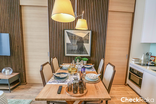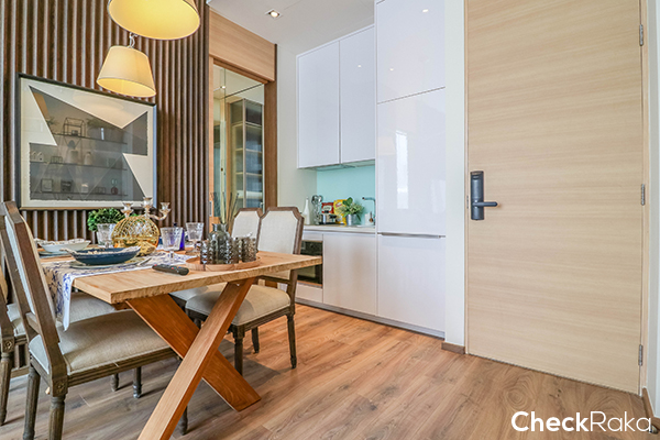 ติดกันก็จะเป็นโซนรับประทานอาหาร พื้นของห้องจะเป็นพื้นพรีเมี่ยมลามิเนตจากยุโรป