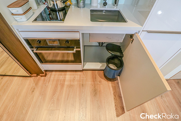 ด้านล่างมีพื้นที่เก็บของอีกนิดหน่อยพร้อมถังขยะใบเล็ก