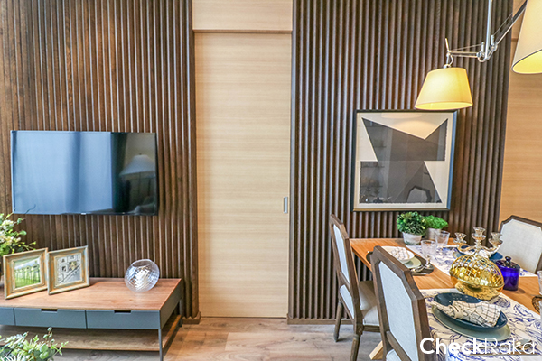 ในทุกๆ ยูนิต จะเน้นพื้นที่การใช้งานด้วยฟังก์ชัน Flow and Fluid และ Sliding Door ที่ทำให้สามารถปรับรูปแบบการใช้ชีวิตภายในห้องได้ตามความต้องการ ซึ่งประตูเป็นองค์ประกอบหนึ่งที่เชื่อมโยงแต่ละพื้นที่ใช้สอยแต่ละส่วนเข้าไว้ด้วยกัน หากอยากให้ห้องโล่งก็เลื่อนประตูบานเลื่อนภายในห้องเปิดออก ก็จะได้ความรู้สึกลื่นไหลไปในทุกๆ พื้นที่ใช้สอย หรือเมื่อเลื่อนประตูปิด พื้นที่ตรงนั้นก็จะเป็นพื้นที่ส่วนตัวของคุณทันที ข้อดีของโครงการที่ใช้ประตูภายในแบบบานเลื่อนก็คือ ไม่เกะกะสายตาเหมือนประตูบานเปิดแบบปกติ