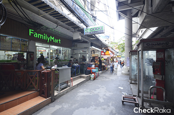 พอลงมาแล้วให้เลี้ยวขวากลับหลังหันก็จะเจอกับ Family Mart