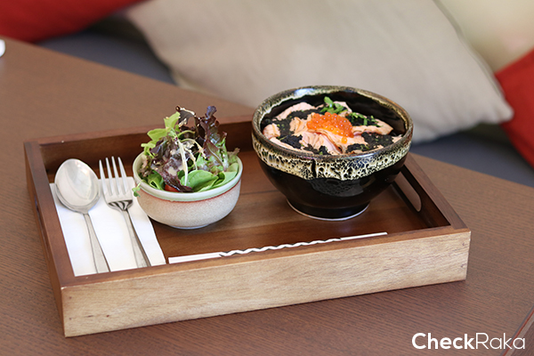 เมนู Black Pearl Don ข้าวหน้าแซลมอนเผาไฟ ไข่ปลา และซอสพอนซึ