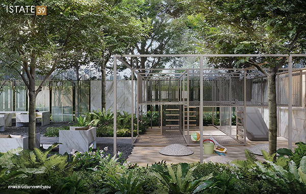 โนเบิล สเตท สุขุมวิท 39 (Noble State Sukhumvit 39) ออกแบบพื้นที่สวนส่วนกลางในแนวคิด "Creative Forrest" โดยกระจายตัวอยู่ที่ชั้น G, 9, 36 ในอาคาร Y และที่ชั้น 3 อาคาร X มีพื้นที่สีเขียวในโครงการฯ ประมาณ 1,285 ตร.ม. มีลิฟต์โดยสาร 3 ตัว และลิฟต์บริการ 1 ตัว พร้อมที่จอดรถใต้ดิน 2 ชั้น และที่ชั้น G จนถึงชั้น 8 รวมแล้วจอดได้ประมาณ 54% ไม่รวมจอดซ้อนคัน สำหรับส่วนกลางอื่นๆ มีดังนี้