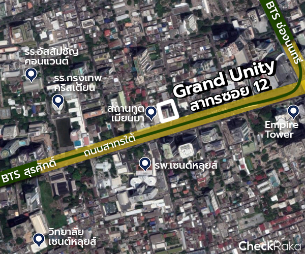 ที่ตั้งโครงการอยู่ตรงหัวมุมสาทรซอย 12 ตรงข้าม Health Land พอดีเลย